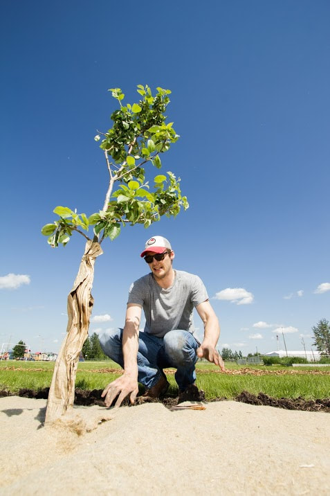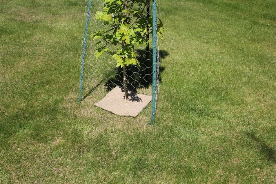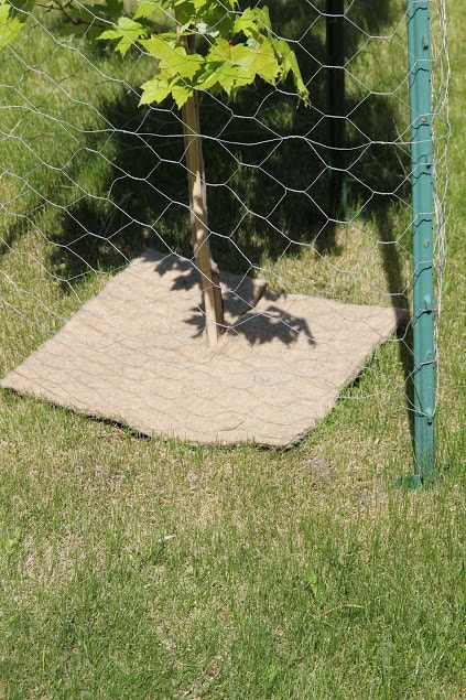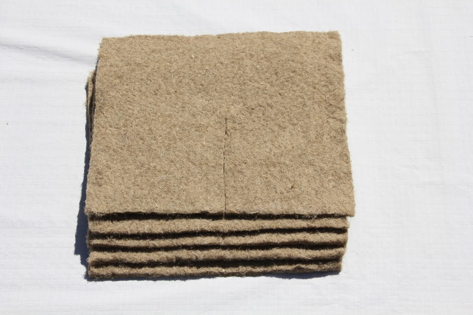 Terrafibre™ weed suppressant product is a non-woven hemp matting that is 100% biodegradable. The matting is used in establishing trees and shrubs, and suppressing invasive weeds in a variety of landscape situations. This thick 1000 grams per square metre matting, allows zero light penetration, which effectively prevents soil erosion, suppresses weeds, preserves soil moisture and insulates plants from temperature highs/lows ensuring establishment. It then fully biodegrades back into the soil, releasing important nutrients for providing a boost in plant growth. Contact us for custom sizing for either squares or full rolls!